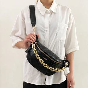 Adoptez la simplicité élégante avec ce sac banane femme, conçu pour accompagner vos journées avec style et praticité. Son look minimaliste est sublimé par une chaîne imitation or qui ajoute une touche de caractère unique. Parfait pour un usage quotidien, ce modèle allie fonctionnalité et design, s'adaptant à toutes vos tenues et toutes les occasions.
