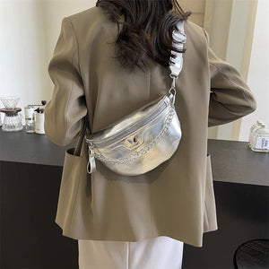Le sac banane femme modèle Zinc and Metal se distingue par son aspect métallique argenté, inspiré de l’univers futuriste et de l’esthétique industrielle. Conçu pour allier robustesse et style, il apporte une touche robotique sophistiquée à vos tenues tout en restant fidèle à l’éthique fashion qui a guidé sa création. Sa bandoulière couleur zinc, rappelant une muselière élégante, ajoute une dimension audacieuse et assure une sécurité optimale en dissuadant les curieux. Avec son beau volume de rangement, il offre tout l’espace nécessaire pour transporter vos essentiels avec style et praticité.